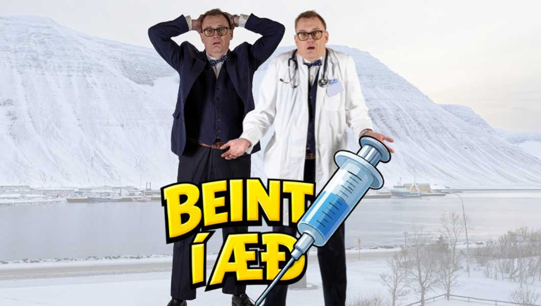 Litli leikklúbburinn sýnir farsann Beint í æð eftir Ray Cooney, í þýðingu Gísla Rúnars Jónssonar, í Edinborgarhúsinu á Ísafirði um helgina.